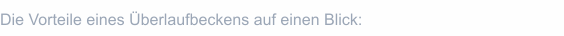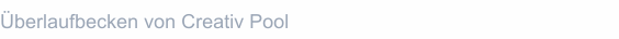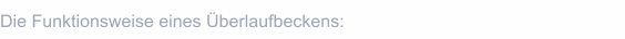 Um ein kontinuierliches Überlaufen des Beckenwassers zu erreichen, wird beim Überlaufbecken der Wasserspiegel über die Überlaufkante der Rinne aufgestaut. In Kombination mit einem entsprechenden Einströmsystem wird eine optimale Hydraulik mit regelmäßigem Wasseraustausch und Reinigung garantiert. Um auch im bodennahen Beckenbereich eine relativ gute Vermischung zu gewährleisten, werden die Düsen im Bodenbereich positioniert. Unabhängig vom Durchströmungssystem ist beim Überlaufbecken ein separater Sauganschluss ca. 30cm unterhalb der Überlaufkante vorgesehen. Dieser Anschluss wird als Saugdüse verwendet und ist gleichzeitig der Anschluss für den Saugschlauch des Bodensaugers.